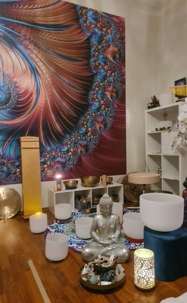 Eine Klangheilreise fördert durch sanfte Vibrationen und harmonische Klänge tiefe Entspannung und Wohlbefinden. Die Schwingungen der Klangschalen beleben Körper, Geist und Seele.
